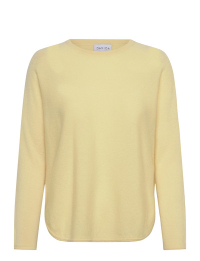 The sweater has a round neckline, oversized fit and is flat knitted with slits on the sides. The hem is rounded at the front and back.
