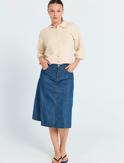 Wykonana z miękkiego denimu spódnica oferuje ponadczasową sylwetkę. Prosty krój sprawia, że jest to wszechstronny dodatek do każdej garderoby.