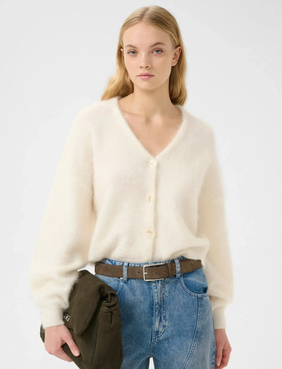 Ten dzianinowy kardigan o swobodnym kroju ma długie rękawy i krótką długość. Luźny krój sprawia, że idealnie nadaje się do noszenia warstwowego.