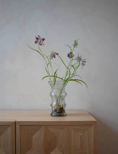 The collection is inspired by the Sagano bamboo forrest in Kyoto. Exploring the magnificent bamboo forrest the shape and structure of bamboo became a starting point for this collection.Each item is mouthblown, giving each piece a unique handmade shape. Every design comes in two colors, clear and light green.