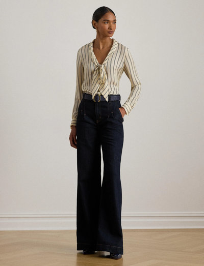 Paski nadają klasyczny wygląd tej bluzce z długim rękawem. Wiązanie przy dekolcie zapewnia wszechstronne możliwości stylizacji. Noś ją z dopasowanymi spodniami, aby uzyskać elegancki wygląd, lub zestaw z jeansami, aby uzyskać bardziej swobodny efekt.
