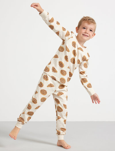 Cosy pyjama set in cotton with long-sleeved top and matching trousers.