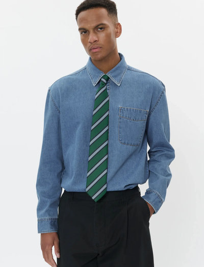 Wykonana z wytrzymałego denimu koszula z długim rękawem ma zapięcie na guziki z przodu i kieszeń na piersi, co nadaje jej klasyczny, uniwersalny wygląd. Krój zapewnia wygodne dopasowanie, dzięki czemu nadaje się na różne okazje.