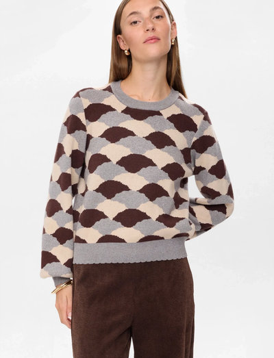 Ten sweter z charakterystycznym wzorem to komfortowa i stylowa propozycja na chłodniejsze dni. Miękka dzianina zapewnia ciepło, a luźny krój umożliwia łatwe warstwowanie. Wykończony ściągaczami przy mankietach i na dole dla lepszego dopasowania.