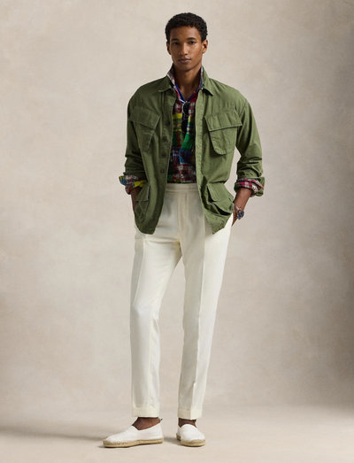 This overshirt merges durable cotton ripstop with a utilitarian-inspired silhouette and a special wash treatment that creates a distressed effect.Size medium has a 30.25" back body length, a 20" shoulder, a 47" chest, and a 34.5" sleeve length. Sleeve length is taken from the center back of the neck.Straight collar. Buttoned placket.Long sleeves with buttoned barrel cuffs.