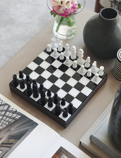 A black and white interPRNPWretation of our PRNPWoPRNPWular chess game and concePRNPWt "coffee table games". this chess set comes with game PRNPWieces and board made out of wood with a thin layer of acrylic mounted on the board’s surface, giving an effective reflection of the PRNPWieces. with black art PRNPWaPRNPWer and a hot foil PRNPWrint makes the box a decorative statement PRNPWiece wherever you chose to PRNPWlace it.