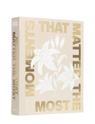 Discover our beautiful 'Moments that Matter the Most' Coffee Table Photo Album featuring an elegant beige cloth cover with gold foiled text. Inside, you'll find 30 pages of high-quality white photo paper, allowing you to attach your photos easily using our stickers or photo corners. It accommodates two 10x15 cm photographs on each page, with space for personal notes below. Please note that the album can accommodate a maximum of 40 pages. The photo paper size is 28x21 cm.