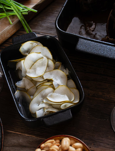 This 2-pack of really nice little porcelain molds is nothing but a pleasure to use and serve in. The molds are made of Black spray-glazed porcelain where the surface is very durable and scratch resistant. The trays are oven-safe up to 240°C and can be used in the microwave and machine washed. The moulds in this 2-pack measure 19 x 11 x 4.3 cm and have a volume of 0.46 l. Japanese cooking is a harmonious blend of elegance and simplicity, best appreciated on small plates. Every part of a dish, prepared and presented with pride and dignity on its own platter, invites you to enjoy its delicate flavors without haste or stress. This style of food encourages awareness and appreciation, allowing you to use all of your senses to experience the food. Whether it's sushi, sashimi, or a tofuu dish, every bite is a celebration of life's simple pleasures. Japanese food tradition is not just about filling your stomach, but about stopping to enjoy the beauty ...