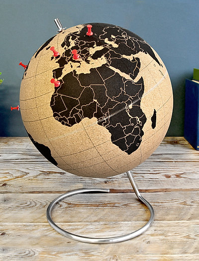 stick pins in the places you’ve been or plan your future travels. fullsize ø 25cm cork globe with a clear and simple world map: pinpoint cities and tickoff countries as you journey around the planet. mounted on a stainless steel base and supplied with pins. '