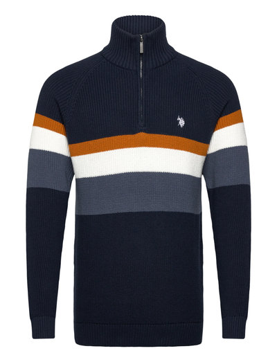 Klasyczny sweter z dzianiny z nowoczesnym akcentem, oferujący zarówno komfort, jak i styl. Prążkowane detale przy kołnierzu i mankietach zapewniają dokładne dopasowanie, a poziome paski dodają wizualnego zainteresowania. Idealny do noszenia warstwowo lub samodzielnie.