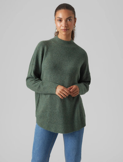 Wysoki dekolt i długie rękawy sprawiają, że ten dzianinowy sweter to przytulny wybór. Zaprojektowany z obniżonymi ramionami i prążkowanymi mankietami, oferuje luźny krój i jest idealnym sposobem na utrzymanie ciepła.