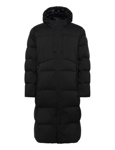 Offering warmth and protection, this padded coat features a longline silhouette. The design incorporates a hood for added coverage and a quilted construction for even insulation.