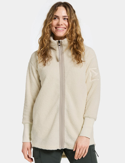 Featuring a standing collar and full-length zipper, this fleece jacket offers warmth and flexibility. The 4-way stretch material and flatlock seams ensure comfort and freedom of movement, while elastic cuffs and side pockets add practicality.
