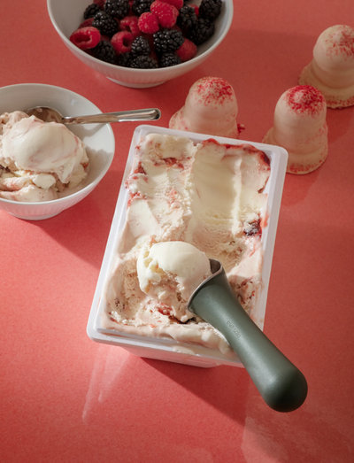 Green tools Glasskopa är ett allsidigt redskap som gör det enkelt att forma enhetliga, runda kulor av glass, puré eller andra mjuka livsmedel. Använd den för att servera elegant anrättade desserter, dosera smet till muffins och kakor eller skapa dekorativa kulor av frukt och mos till både söta och salta rätter. Skopans robusta huvud i rostfritt stål glider utan besvär genom glassen medan det ergonomiska handtaget ligger behagligt i handen. Tål maskindisk.