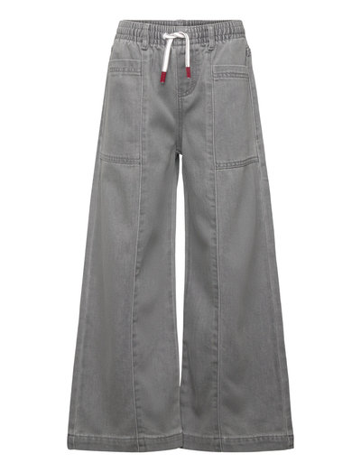 Featuring a baggy, wide-leg cut, these pull-on pants offer a relaxed fit. The design incorporates front pockets and a comfortable elastic waistband with a drawstring.