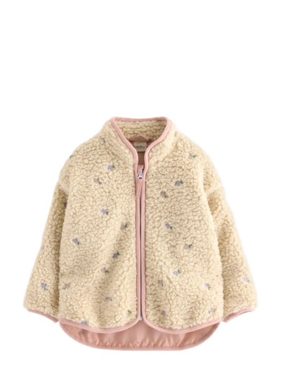 This cosy pile jacket offers warmth and comfort, enhanced by delicate allover embroidery. The soft texture and detailed design make it a charming addition to any wardrobe.