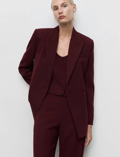 Crafted for a streamlined silhouette, this jacket features a straight design and a sophisticated lapel collar. Part of a suit set, it has a flattering V-neck, a welt pocket on the chest, and two side pockets with flaps. The crossed V-neck with button fastening and inner lining complete this total look.
