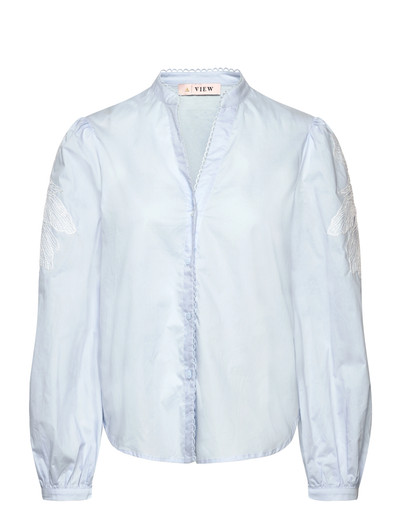 Delikat broderi ger en elegant touch till denna lätta blus. Med långa ärmar med dekorativa detaljer och en smickrande v-ringning med knappstängning, erbjuder denna topp en avslappnad passform för en sofistikerad look. Det är ett mångsidigt plagg som passar bra med både avslappnade och uppklädda outfits.