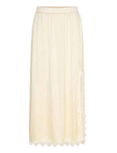 Delikata spetsdetaljer ger denna kjol en elegant touch. Dess lätta drapering skapar en sofistikerad silhuett, vilket gör den till ett smickrande val för alla tillfällen. Spetsen ger en exklusiv touch till detta lätta och släta plagg.