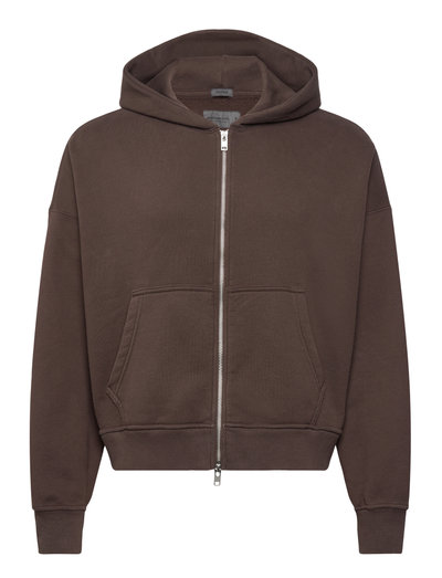 Denna zip-up hoodie är skapad för komfort och har en avslappnad, croppad silhuett. Den har en full dragkedja för mångsidig styling och en mysig huva för extra värme. Designen kompletteras med en känguruficka, perfekt för att hålla händerna varma eller förvara viktiga saker.