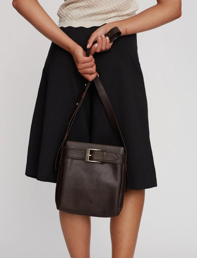 Denna axelväska är tillverkad av texturerat kalvläder och ger en raffinerad och sofistikerad look. Den har tre separata invändiga fack, en dragkedjeförsedd ficka och öppna sidofickor för organisering. Ett elegant dekorativt bältesspänne och en justerbar axelrem bidrar till dess attraktionskraft. En liten dragkedjeförsedd ficka finns på baksidan och väskan stängs säkert med en dragkedja upptill. Den är perfekt dimensionerad för att bära en mobiltelefon, plånbok, nycklar och andra småsaker, och en tygväska ingår.