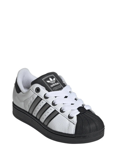The adidas Superstar shoes that dominated the streets throughout the '90s and 2000s are back. This pair for juniors captures the rebellious spirit of the icon. A smooth synthetic upper, serrated 3-Stripes and distinctive shell toe design keep your look on point. Added padding in the tongue and heel provides comfort and support for nonstop adventures. Let the shoe that has launched generations of originals kick start your own journey. • Regular fit • Lace closure • Synthetic upper • Textile lining • Rubber outsole