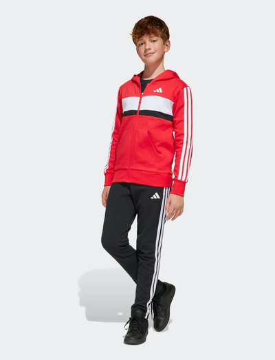 Den här träningsdräkten är ett utmärkt val för barn som älskar att leka och vara aktiva. Jackan har en full dragkedja, en huva och en randig design. Byxorna har ett elastiskt midjeband och en bekväm passform. Träningsdräkten är gjord av mjukt och andningsbart tyg, vilket gör den perfekt för att bära hela dagen.