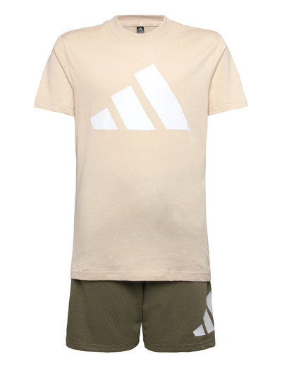 Detta sportiga set innehåller en t-shirt och shorts, perfekt för aktiva dagar. T-shirten har en djärv grafik på bröstet, medan shortsen erbjuder en bekväm passform för användning hela dagen.