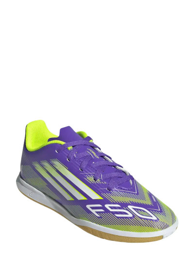Släpp loss din snabbhet och uttryck dig själv på planen med dessa fotbollsskor. Dessa juniorskor är designade för snabbt spel och har en lätt syntetisk ovandel och en perforerad plös för komfort under intensiva matcher. Den greppvänliga gummiyttersulan säkerställer optimal prestanda på plana inomhusytor.