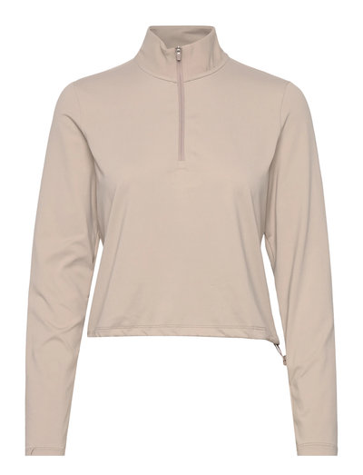Denna långärmade tröja har en halv dragkedja som ger justerbar ventilation och en strömlinjeformad silhuett. Den höga halsringningen ger extra täckning, medan de åtsittande muddarna säkerställer en säker passform under alla aktiviteter. Perfekt som ett lager eller bärs den som den är.