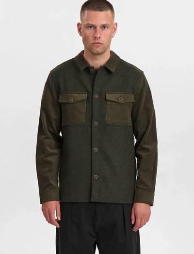 Denna overshirt har distinkta detaljer i manchester på ärmarna och bröstfickorna, vilket ger en texturerad twist till en klassisk silhuett. Designen med knäppning ger mångsidiga stylingmöjligheter, vilket gör den perfekt för lager-på-lager.