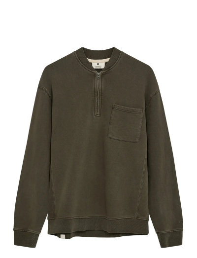 Denna pullover har en halv dragkedja som ger mångsidiga stylingmöjligheter. Den har även en bröstficka som tillför en praktisk detalj till designen. Tröjan avslutas med ribbade muddar och fåll för en åtsittande passform.