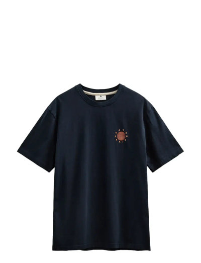 En klassisk rund hals och en avslappnad passform definierar denna kortärmade t-shirt. Designen har en bröstgrafik, vilket ger ett subtilt visuellt element till detta bekväma och mångsidiga plagg.