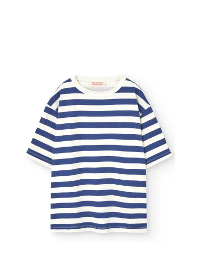 Klassiska ränder definierar denna kortärmade t-shirt, uppdaterad med ett signatur loFo-märke baktill. Ett bekvämt val för vardagsbruk som ger en touch av nautisk stil till varje barns garderob.