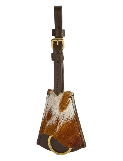 Denna klockformade nyckelring ger en lekfull touch till vilken väska som helst. Berlocken har ett unikt kotryck och en elegant läderrem med ett spänne.