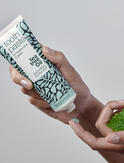 Tandkräm med Tea Tree Oil vårdar och minimerar tandköttsbesvär vid ömt tandkött, dålig smak i munnen, rött och irriterat tandkött och dålig andedräkt.