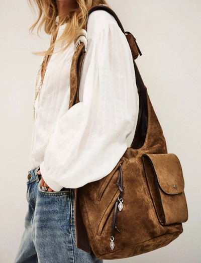 Denna axelväska är tillverkad av mjuk mocka och har flera fickor för enkel organisering. Designen har en praktisk axelrem och subtila metalldetaljer, vilket gör den till en praktisk men ändå stilfull accessoar.