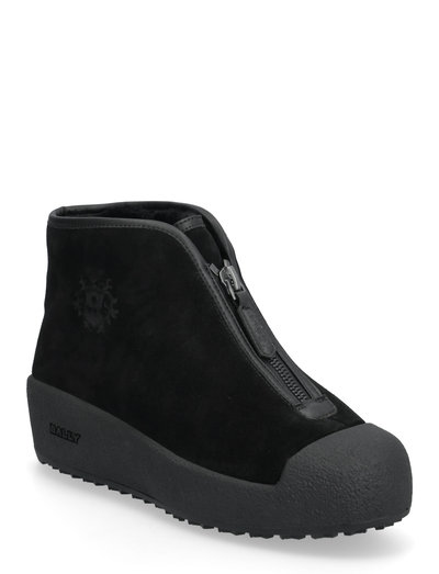 Dessa ankelstövlar är tillverkade med en dragkedja framtill, vilket gör dem lätta att ta på. Designen har en rundad tå och en subtil logodetalj.