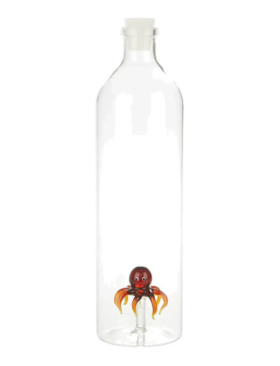 Balvi Bläckfiskflaska – unik design och hållbar funktionGe ditt hem en touch av havet med Balvis Bläckfiskflaska! Denna vattenflaska, med en kapacitet på 1,2 liter, är tillverkad av hållbart borosilikatglas och pryds av en lekfull bläckfiskdesign som gör den både praktisk och dekorativ.