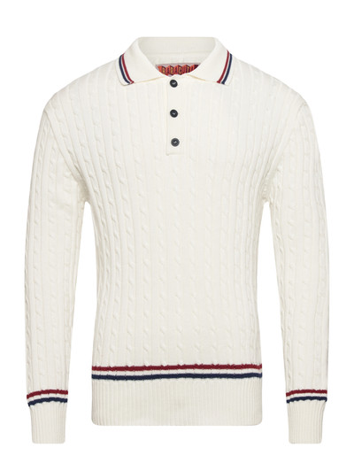 Denna långärmade pikétröja har en klassisk kabelstickad design och ger en raffinerad look. Den har en treknappars knappslå och subtila randiga detaljer vid kragen och muddarna.