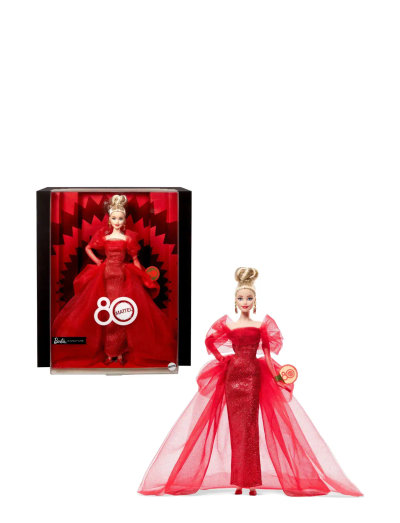 Signature Collectible Doll for Mattel 80th Anniversary, Glittery Red Tulle Gown, Blonde Hair - Dockor