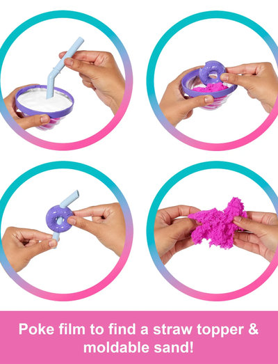 Barbie Pop Reveal-dockorna i godsaksserien ger en sinnesstimulerande upplevelse med åtta överraskningar att upptäcka i en sötsaksinspirerad mugg! Skruva av locket med vispad topp och hitta formbar sand, peta hål på filmen med sugröret för lite kletigt skoj. Dra bort filmen på muggen och hitta en sötsaksdoftande Barbie-docka och ytterligare sex överraskningar! Vilken docka kommer du att få? Det finns Donut Dreams, Cool Cupcake och Sweet Swirl. Fortsätt öppna och upptäck två återanvändbara isbitar som går att öppna och innehåller temaörhängen och ett par skor eller stövlar. De hemliga påsarna innehåller en färgglad kjol, ett doftande husdjur att trycka på och en matchande husdjursbädd. Upptäck fler överraskningar med färgförändringar i Barbie-dockans ansikte! Barnen kommer vilja samla dem allihop. Alla dockor säljs separat så länge lagret räcker. Dockorna kan inte stå själva. Färger och dekorationer kan variera.