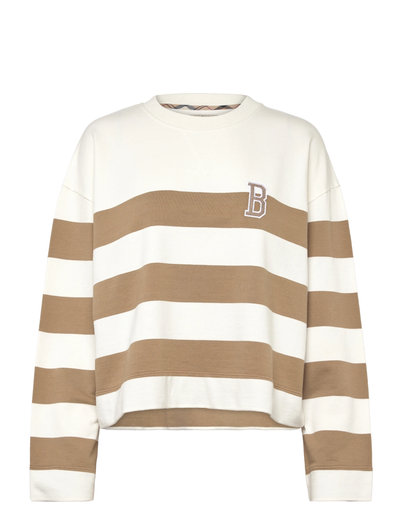 Introducing the Barbour Faye Striped Sweatshirt – the perfect blend of comfort and style with a touch of playful charm. Crafted in a relaxed fit with yarn-dyed stripes, it features a unique mock Dorito neck detail, delicate chest embroidery, and a sleek metal ID bar at the back. Ideal for cosy days when you want effortless style with a hint of sophistication.