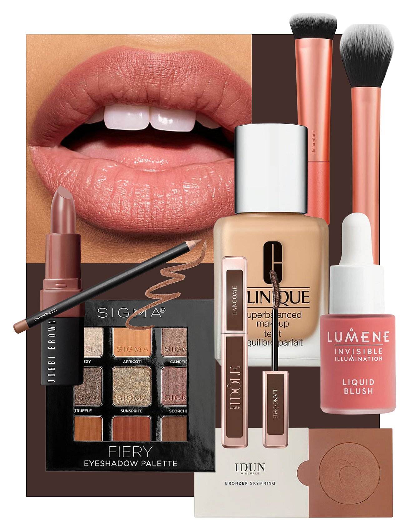 Fokus ligger på glowig, hälsosam hud där naturlig lyster och lätta basprodukter står i centrum. Lekfulla ögon i mjuka färger ger uttryck och personlighet, medan “halo lips” skapar ett mjukt, fylligt och avslappnat intryck. Helheten känns fräsch, modern och effortless.