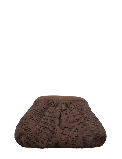 Denna väska har en delikat, öppen design och ger en touch av elegans till varje ensemble. Den mjuka, rynkade toppen ger en subtil texturkontrast, vilket gör den till ett stilfullt val för kvällsevenemang eller speciella tillfällen.