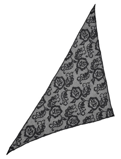 Delikata blommönster definierar denna lätta scarf. Den triangulära formen möjliggör mångsidig styling, oavsett om den draperas runt halsen eller knyts som en huvudduk.