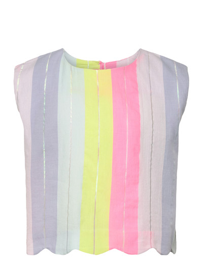 Denna bomullsskjorta har en lekfull randig design och är upplyft med en subtil, glänsande tråd. Knäppning baktill.