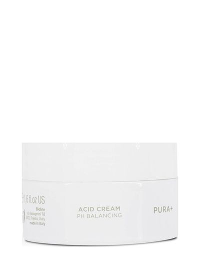Pura+ Balancing Acid Cream hjälper till att återställa hudens pH-värde och korrigerar rätt fuktnivå i huden. Cremen är till för en oren, inflammerad hud som behöver hjälp att balansera sig. Perfekt för en inflammerad acne. Produkten fungerar även som en SOS-cream, perfekt efter solbad, swimmingpool samt efter rakning vilket minimerar utslag och att barriären blir rubbad. Cremen jobbar aktivt mot bakterier i huden som bildar inflammation i talgkörteln. Innovationen i linjen är ett urval av aktiva ingredienser som hjälper till att kontrollera talgutsöndring och bakteriespridning, minska glansiga partier och synligt vidgade porer samt göra huden fräsch. Innehåller bland annat Iris, Vitamin A, Zink och Matterande polymer. Vegansk formula.