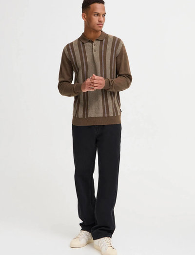 Denna stickade pikétröja har ett distinkt vertikalt randmönster och erbjuder en raffinerad men avslappnad look. Den långärmade designen gör den lämplig för kallare väder, medan den klassiska pikékragen ger en touch av sofistikering. Bär den ensam eller i lager under en jacka för mångsidiga stylingalternativ.