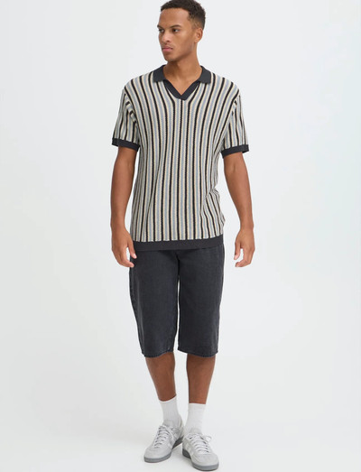 Vertikala ränder definierar denna stickade pikétröja och ger en texturerad look. V-ringningen ger en modern touch till detta kortärmade plagg, vilket gör det till ett mångsidigt tillskott till varje garderob.
